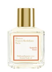 - The Amyris femme scented body oil exalts the skin with an exquisite, sensual veil. Its light, non-greasy, irresistible texture is rapidly absorbed, leaving the skin satiny smooth and delicately scented. It blends three oils selected for their natural properties: argan oil known for its revitalizing and antioxidizing properties, sweet almond oil known for its softening and regenerating abilities and apricot kernel oil known for its contribution to radiance-boosting.