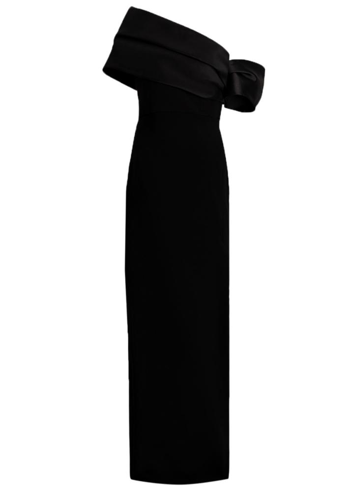 - Modern lines and sculptural designs define the collection at Solace London, infusing it with a strikingly chic edge. The Alexis gown is no exception, showcasing a figure hugging column silhouette crowned by a pleated off the shoulder satin overlay for an added touch of sophistication.