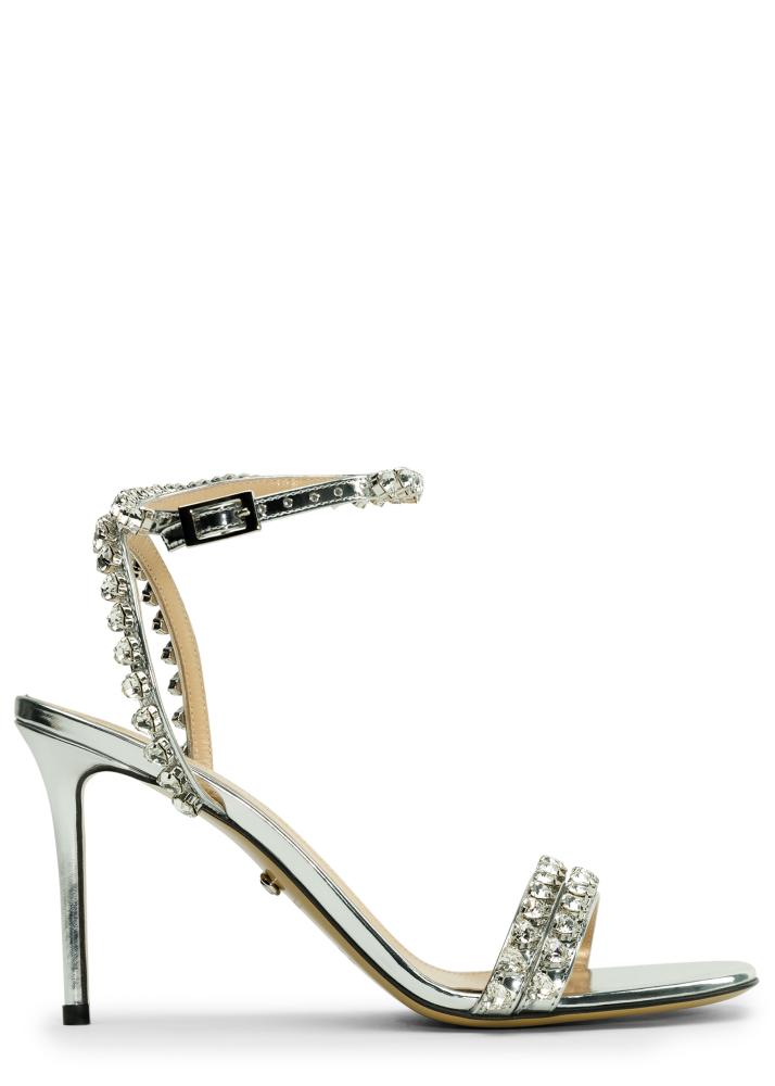 Audrey 95 silver crystal-embellished leather sandals