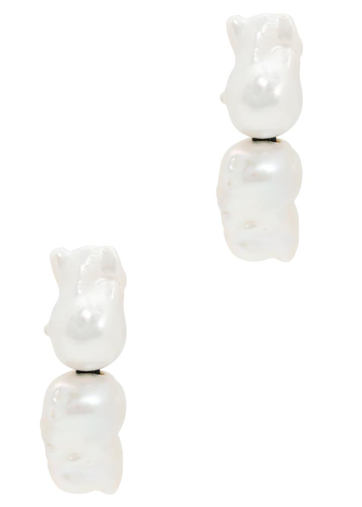 These drop earrings from Monies showcase a sculptural design featuring iridescent baroque pearls, making for a perfect statement pair for those who embrace the unconventional.