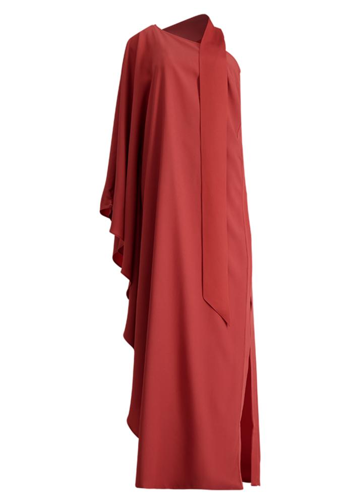 - Drawing inspiration from the 1970s silhouette, the Bolkan maxi dress from Taller Marmo boasts a one shoulder design with a chic scarf detail at the neck and sweeping waterfall sleeve and hem.