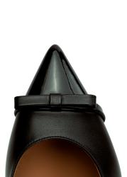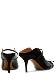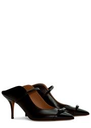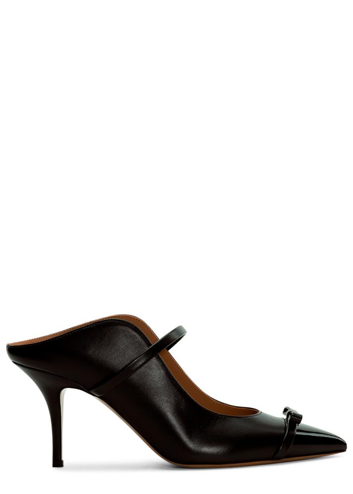 The Blanca Mule by Malone Souliers flaunts the iconic wave-like silhouette. Two straps punctuate the curved profile, while a dainty bow embellishes the pointed toe and adds an additional feminine touch to the signature style.