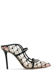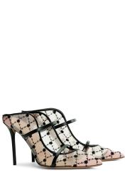Maureen by Malone Souliers undergoes a chic transformation with leather-trimmed motifs. This iteration features the iconic wave silhouette, crafted from mesh and adorned with sleek leather accents. Dual straps add signature charm to the design.