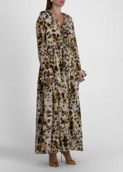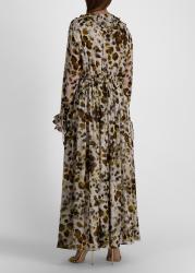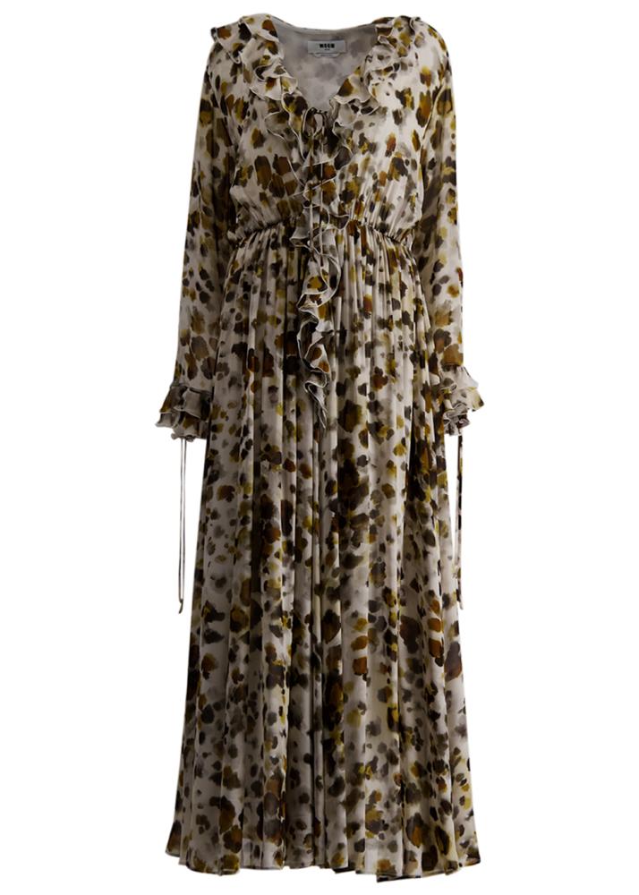 Cascading ruffles from the bodice create a dramatic allure on this MSGM maxi dress, while the cinched waist accentuates your curves. A sleek tie detailing at the neck adds a touch of versatility, allowing you to style it with flair.