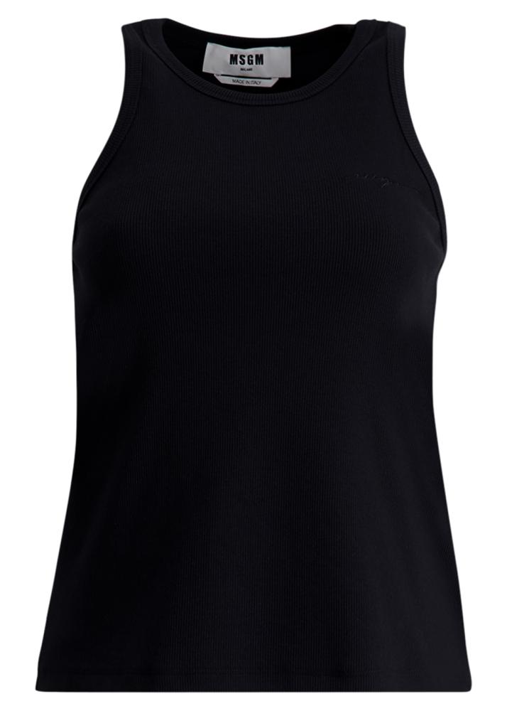 This ribbed tank in stretch cotton with a round neck and contrasting MSMG embroidered logo is a perfect minimalist style that is ideal for everything from beach days to backyard BBQs.