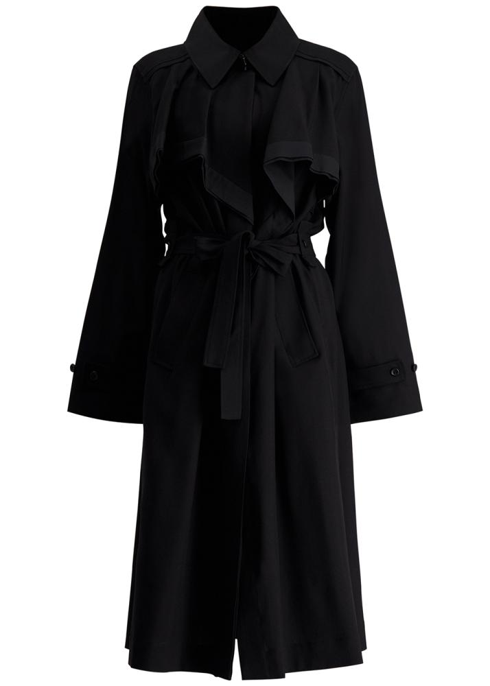 This dress from 3.1 Phillip Lim is tailored to a shirtdress silhouette with a draped ruffle panel on the bodice and a tied waist that falls to the calf-grazing hem.