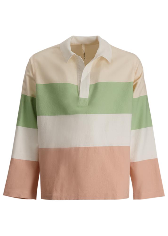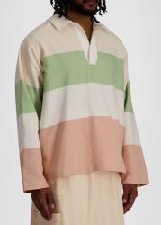Step into a realm of timeless style with this polo shirt from Marrakshi Life. Its dynamic rhythm of stripes adds a burst of colour to your ensemble, while a high-low hem with split sides introduces a touch of playful elegance.