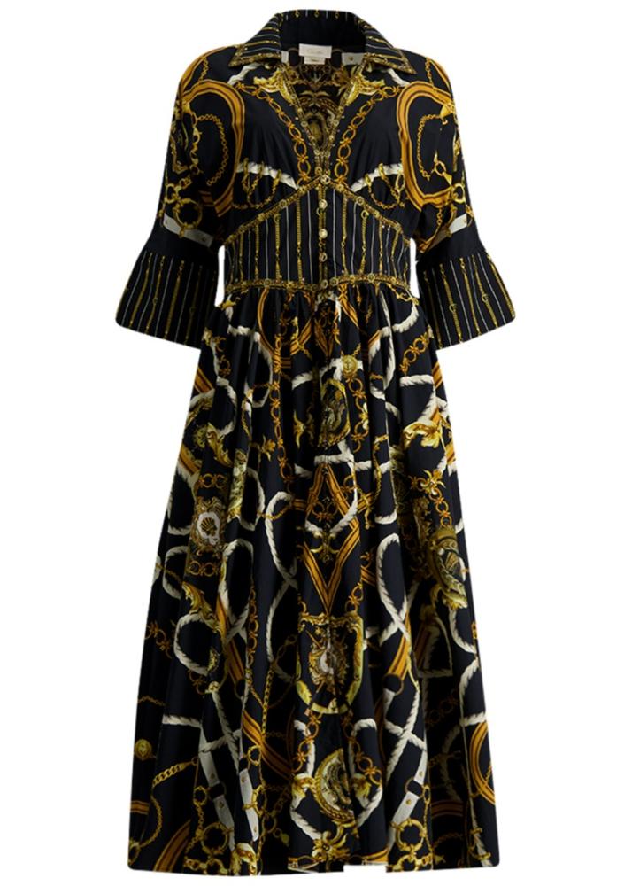 - The Coast To Coast dress by Camilla is a nautical inspired masterpiece in cotton poplin with elegant corset detailing at the waistline for a flattering cinch. Relaxed sleeves and a retro roll collar add a polished edge to its maxi silhouette.