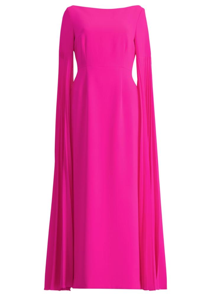 - The Grace gown from Solace London is cut from a luscious pink crepe that cinches at the waist, defining elegance in every contour. Cape style pleated sleeves add a touch of high fashion drama to the masterpiece.