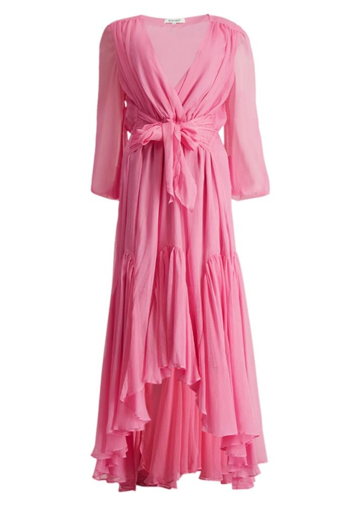 - The Grandiose maxi dress from Elliatt cinches in the waist with its asymmetric wrap silhouette that is framed by billowy sleeves and buttoned cuffs. Its ruffled and flared hem adds delightful sway to every step.