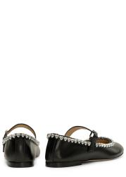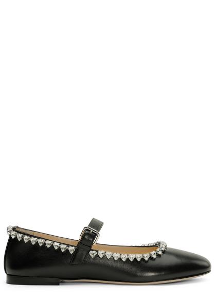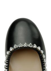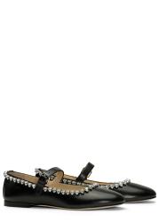 Heart-shaped crystals grace the Audrey ballet flats, adding a touch of sparkle to their classic silhouette. Mach & Mach crafted their signature style from black leather, combining sophistication with understated glamour for a look that transcends trends.