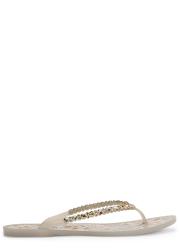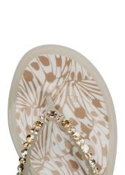 Esme flip-flops by Sophia Webster are designed with a white and gold zebra swallowtail print insole and multi-colour crystal strap, allowing them to effortlessly transition from glamorous parties to leisurely poolside lounging.