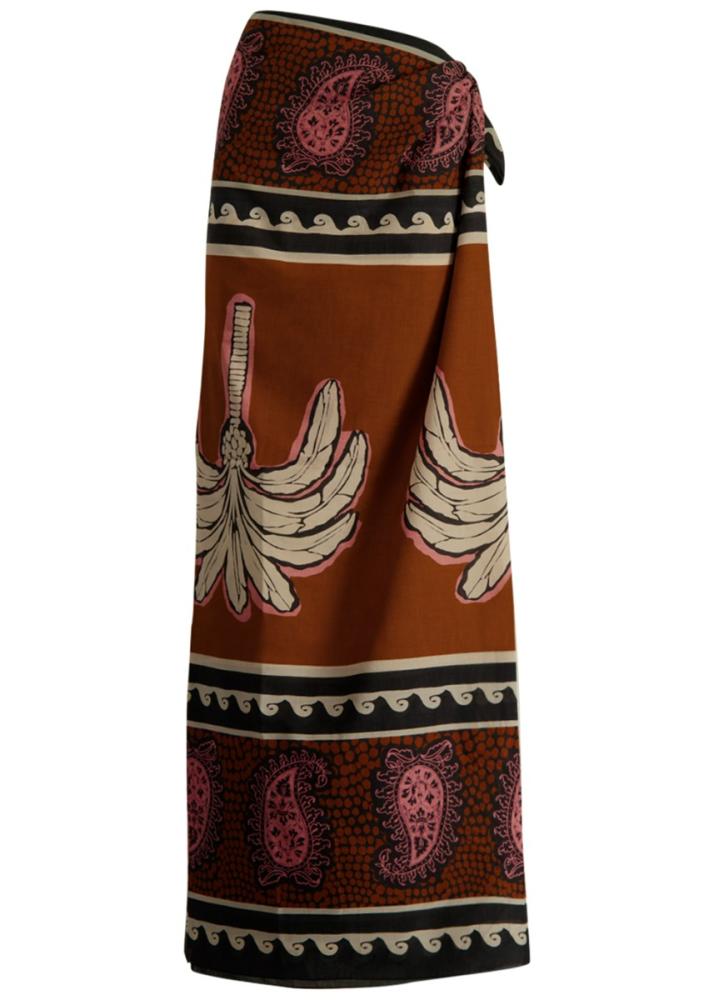- Immerse yourself in the allure of swaying palm trees and the mesmerising paisley patterns that adorn the Kilimanjaro sarong. This chic piece from Johanna Ortiz effortlessly accentuates your natural curves, providing a flattering and stylish touch to your beachwear or casual ensemble.