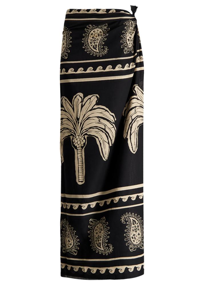 - The Kilimanjaro sarong from Johanna Ortiz, portraying swaying palm trees and mesmerising paisley patterns, accentuates your natural curves effortlessly. Wear it as a skirt, top, or statement accessory to add sophistication to any ensemble.